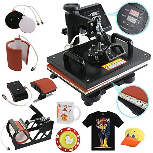 This 5 in 1 heat press machine with 2in1 digital controller is out now. This swing-away heat press boasts all of the must-have attachments. This includes flat platen, mugs and plates. It can transfer colorful pictures and characters of sublimating and dissolved printing ink onto ceramics, glasses and textiles such as cotton, flax, chemical fiber, nylon, etc.